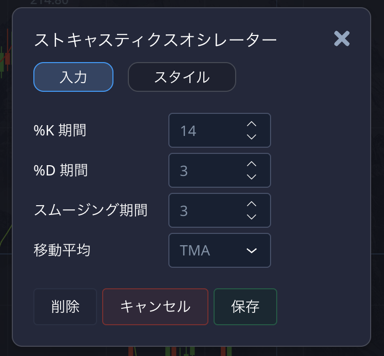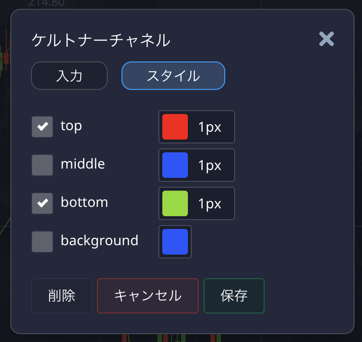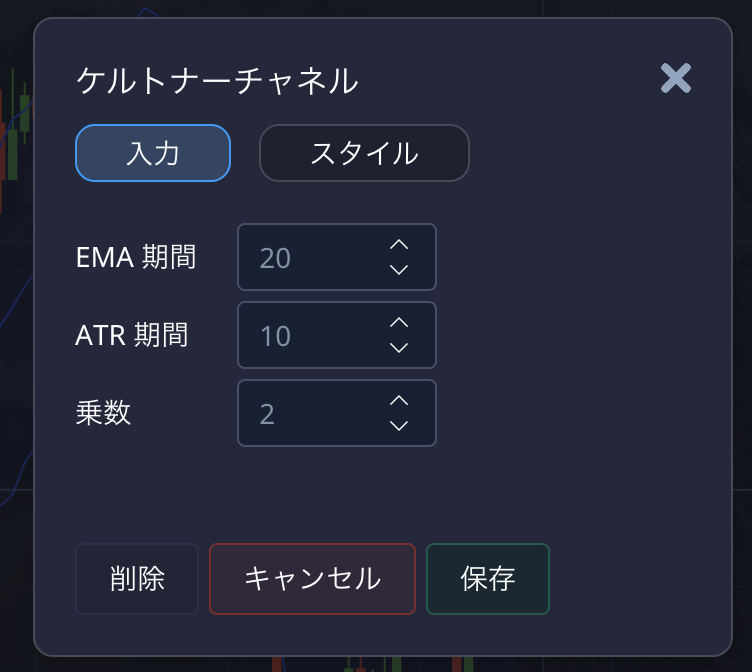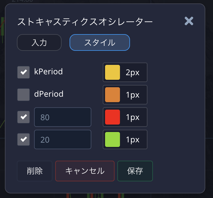 表示させるインジケーターはケルトナーチャネルとストキャスティクスオシレーターの2つになります。