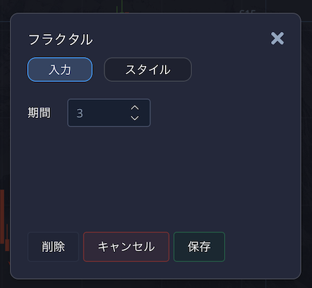 表示させるインジケーターはフラクタルとボルテックスの2つになります。
