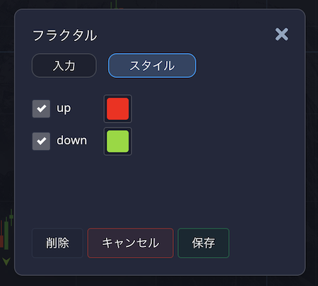 (色はお好みですが、デフォルトと逆にすることで売買カラーと一致するようになっています)